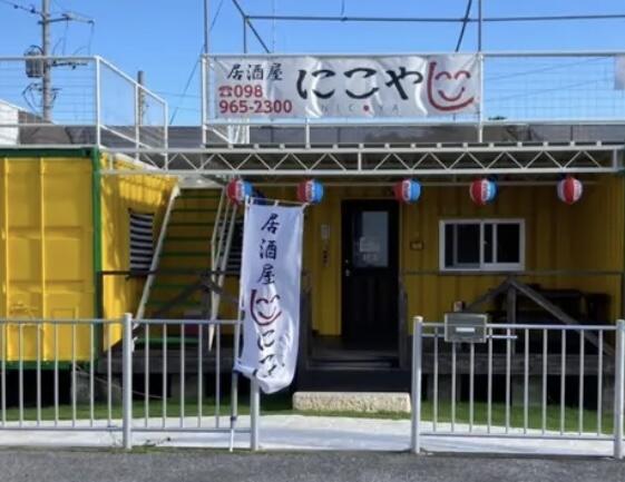 にっこりマークの看板と黄色いコンテナが目印の【居酒屋にこや】さん!