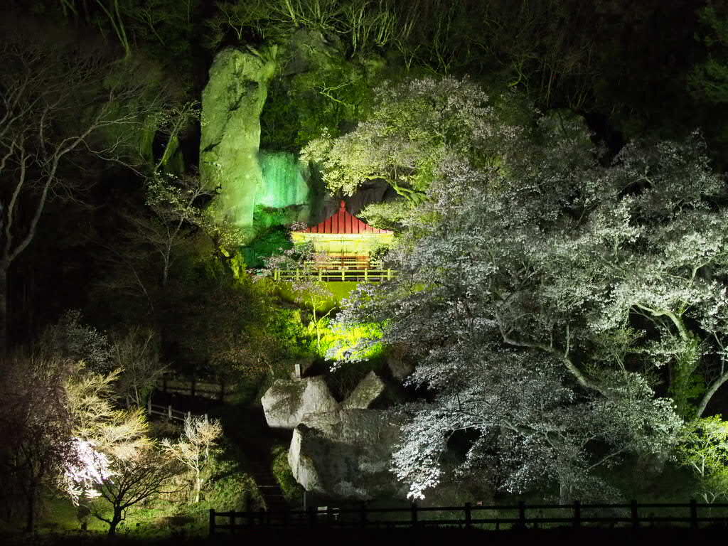 夜には桜まつりの時期だけライトアップされます。下の田んぼの水面にも映り、「逆さ堂の下観音」を見る事ができます。平日の夜にもかかわらず、たくさんの方が、高そうなカメラを持って撮影していました。それにしても下から見上げるライトアップされたお堂の姿は感動的です。必見ですね。(ライトアップは4/12迄です)