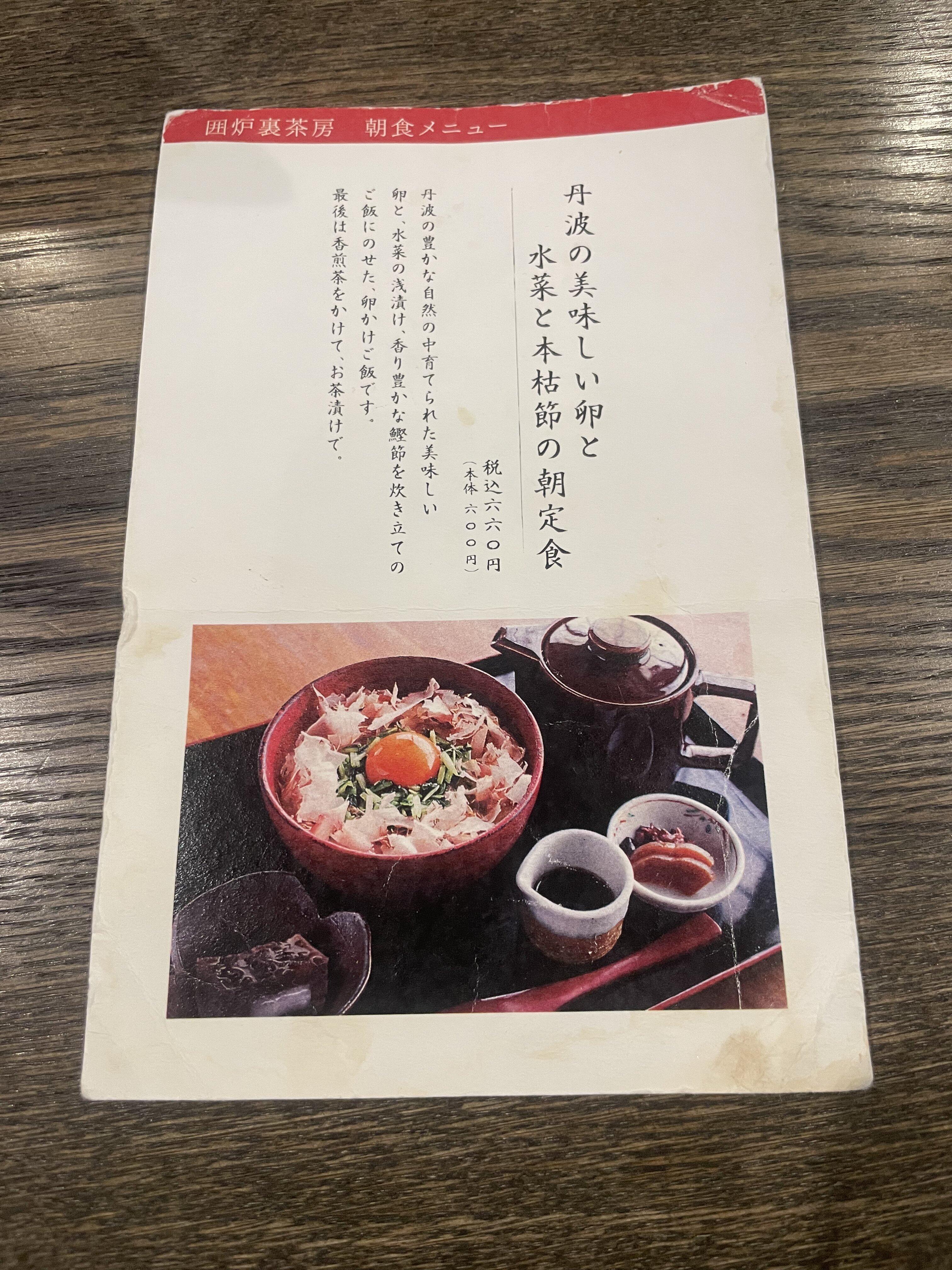その名も「丹波の美味しい卵と水菜と本枯節の朝定食」です。